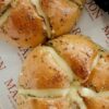 Bánh mì bơ tỏi với lớp vỏ ngoài giòn nhẹ, ruột bánh mềm xốp, thấm đều hỗn hợp bơ tỏi thơm lừng. Vị béo của bơ hòa quyện cùng mùi tỏi đặc trưng, điểm chút mặn nhẹ vừa miệng, tạo nên món bánh đậm đà, hấp dẫn – dùng nóng là ngon nhất.