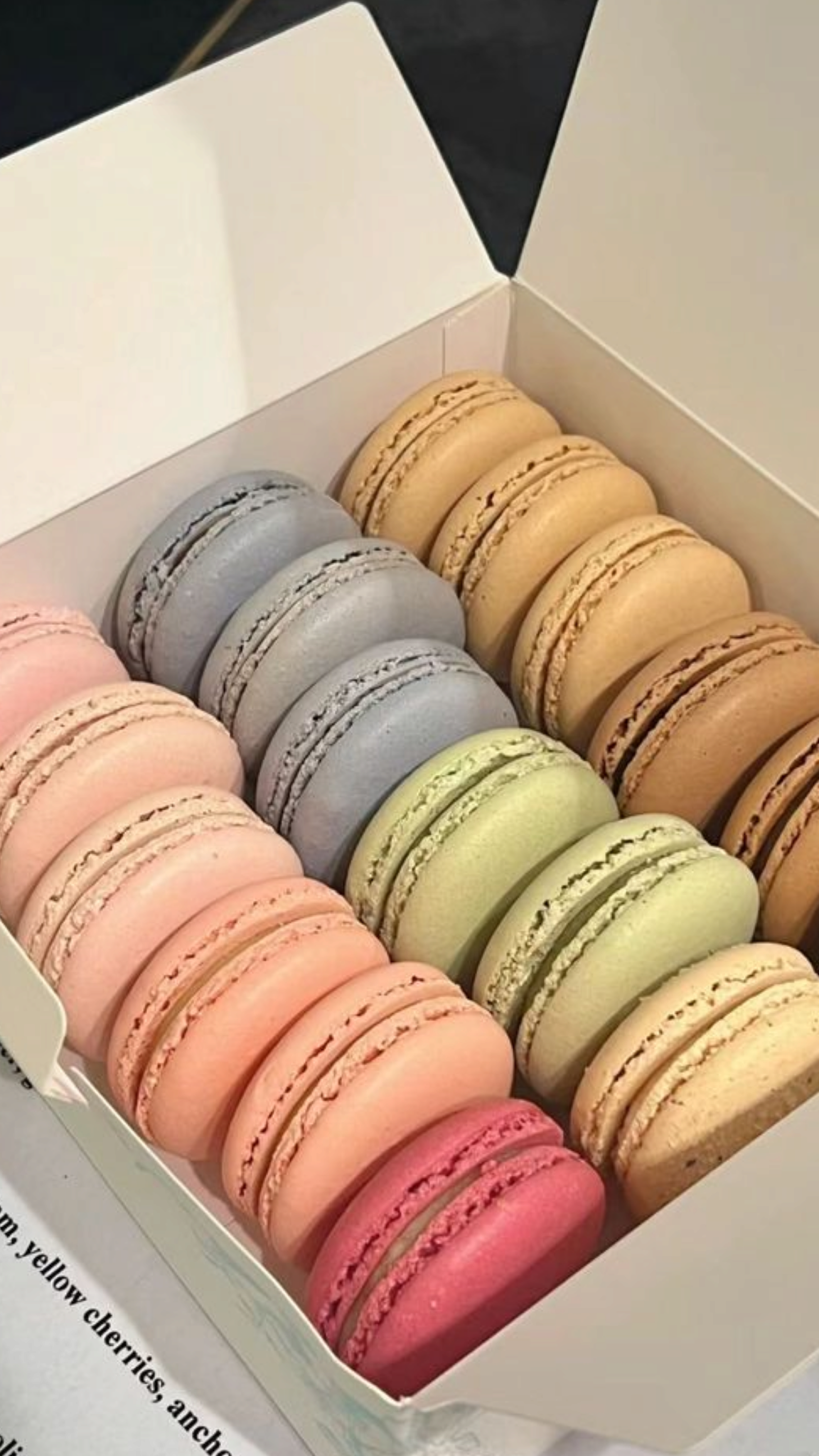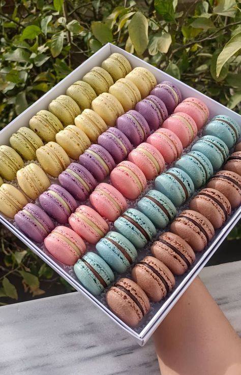Macaron là loại bánh tráng miệng nổi tiếng của Pháp với vẻ ngoài nhỏ xinh và đầy màu sắc. Bánh có lớp vỏ giòn nhẹ bên ngoài, bên trong mềm dẻo và mịn màng. Phần nhân đa dạng như socola, vani, trái cây hay trà xanh, mang đến nhiều lựa chọn hấp dẫn. Hương vị ngọt thanh cùng hình thức tinh tế khiến macaron trở thành biểu tượng của sự sang trọng và lãng mạn.